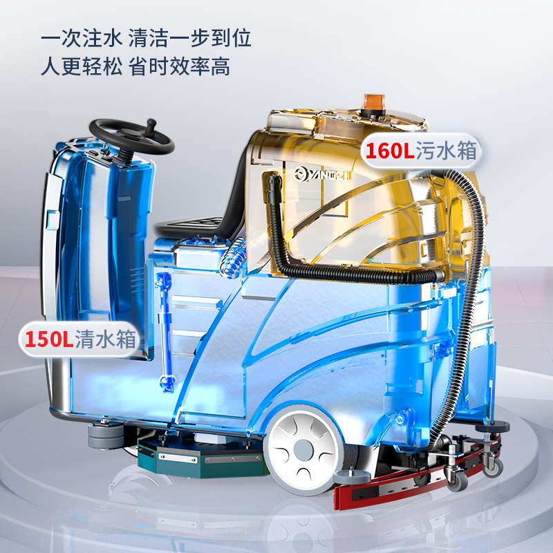 揚子X8駕駛式洗地機860mm清潔路徑,150L清水箱和160L污水箱,大尺寸清潔更給力,高達(dá)7600平方米/小時清潔。采用知名品牌原廠定制電池,更快更久更強的電池性能,分離式吸水扒確保安全,符合人體工學(xué)優(yōu)化,可最大程度地提高操作員的舒適度和控制力。